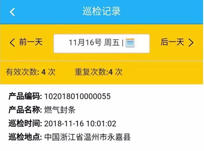 气瓶封扣上防伪码采用是量子云码,量子云码的特性是:极难复制,一物一码,防破坏性强,破坏百分之八十可识别,特点可以解决破坏性窜货问题,可任意塑形,做成任意的图像,隐形,最重要的是成本极低。量子云码通过手机app识别后可以看到产品的图文信息和扫码记录,并且可直观查询该产品的扫描次数和扫描位置、扫描时间,扫描人员等信息。