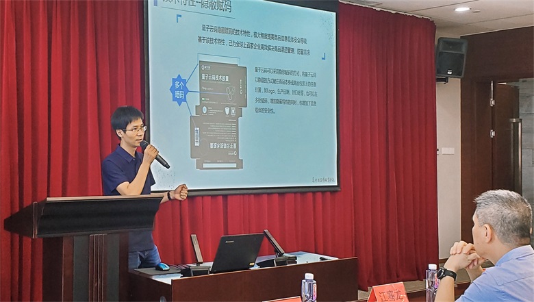 项目实施部总监宁毅鹏向参会人员分享了《量子云码技术的实施与应用》,深入剖析了量子云码技术优势。注重理论的同时,更注重实践,以视频的形式,为大家讲解了量子云码喷码以及信息采集的生产过程。