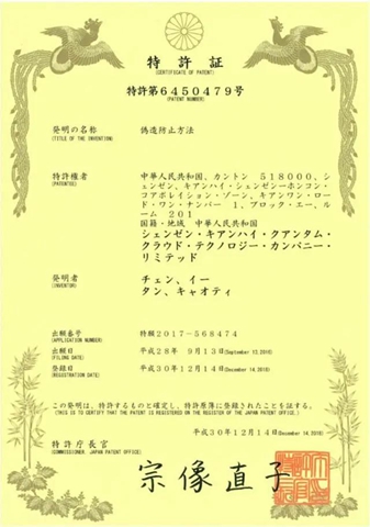 “量子云码”是公司核心技术,是基于庞大的专利算法数据库,形成的一套定制化服务于客户的微观微距智能图像识别系统。目前已在中国、美国、日本、韩国等全球范围内获颁十余项发明专利。