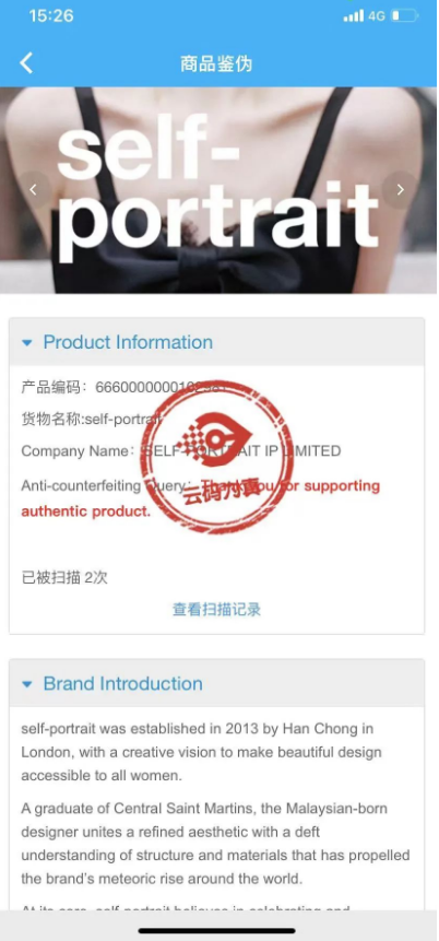 self-portrait量子云码吊牌防伪标签溯源界面